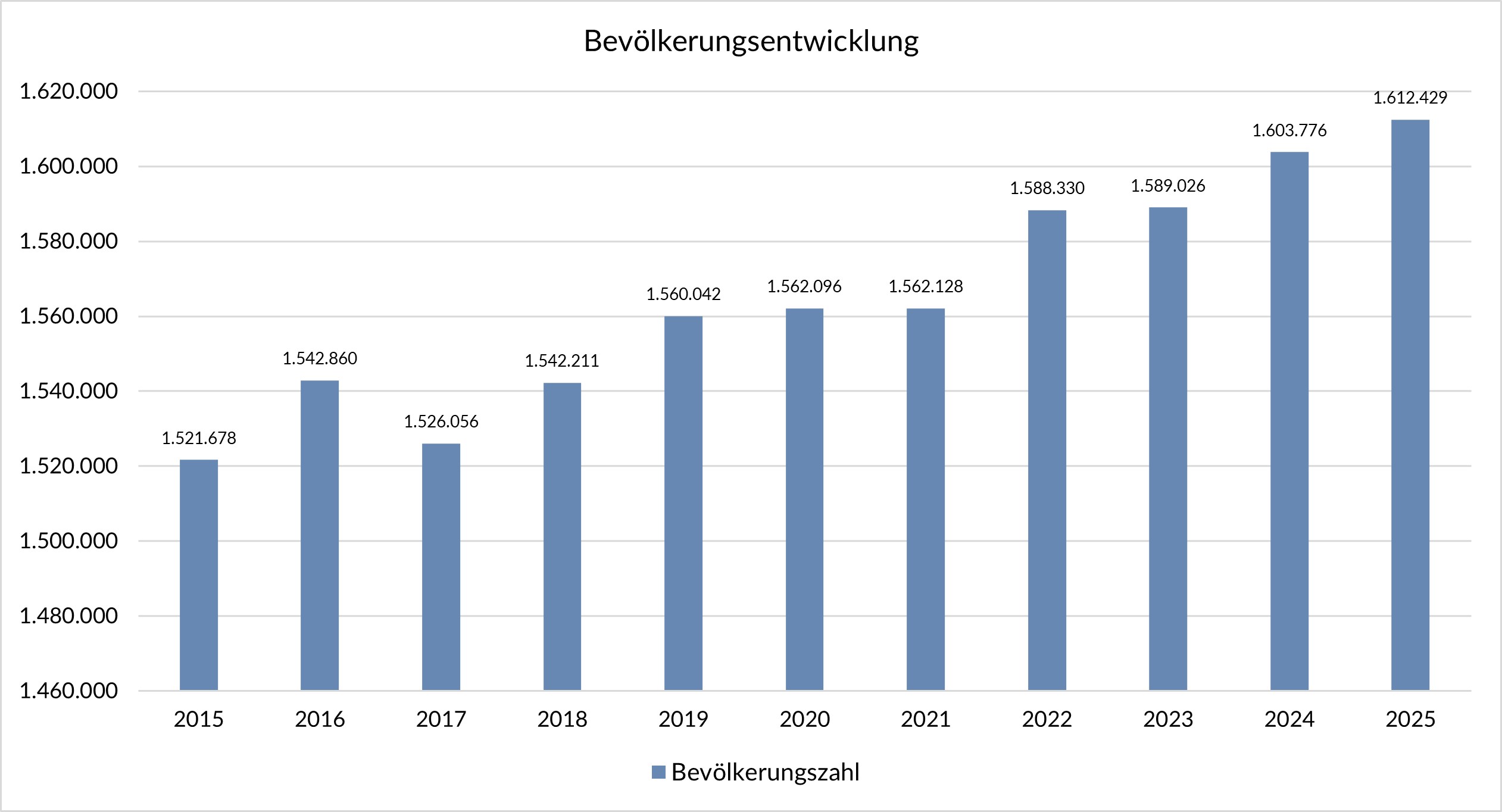 Die Bevölkerung Münchens ist in den letzten Jahrzehnten zwar insgesamt deutlich angestiegen, erfuhr aber – vor allem aufgrund statistischer Korrekturen und in den Corona-Jahren – auch immer wieder Teilrückgänge oder Stagnation. Über die Jahre hinweg ist aber eine positive Bevölkerungsentwicklung erkennbar.